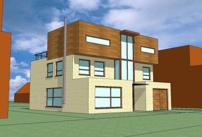 Nieuw OntwerpToen ons bureau in beeld kwam lag er al een ontwerp. Maar de opdrachtgever was er niet écht enthousiast over. Het bestond uit té veel blokken, té veel versieringen, té veel opschmuck en was door de diverse bezuinigingsronden té onpraktisch in het gebruik geworden. Ze wilden weliswaar een moderne en eigentijdse woning, maar het realiseren van een eigen, gemoedelijke sfeer was erg belangrijk. Ze willen een ruime woning, ruime entree, grote woonkamer, woonkeuken, studeerkamer, 3 grote slaapkamers, ruime en praktische badkamer, extra berg-logeerkamer, ruime garage-berging, etc. Maar in het bestaande ontwerp kwamen veel van deze wensen danig in de knoei. Om de wensen van onze opdrachtgever alsnog te kunnen realiseren gingen wij opnieuw met hun programma van eisen aan de gang, en ontworpen uiteindelijk hun droomvilla. Rijk gevoelAls entree kom je binnen in een ruime, zes meter hoge hal. Van hieruit ontsluit het gebouw zich naar wonen, werken en slapen. De lichte baksteen gevels worden waardig gevuld met warme mahoniehouten kozijnen. Ook de openslaande garagedeuren en de luifel op de verdieping hebben deze luxe, warme uitstraling meegekregen. De rvs trap met mahoniehouten treden versterkt dit rijke gevoel. Uitbreiding voorzienHoewel de woning ruim aan de ruimtebehoeften van het gezin van de opdrachtgever voldoet, vonden wij het noodzakelijk alvast in de toekomst te kijken. Mocht de ruimtebehoefte om welke reden dan ook ooit wijzigen, dan is voorzien dat een extra verdieping kan worden toegevoegd. |